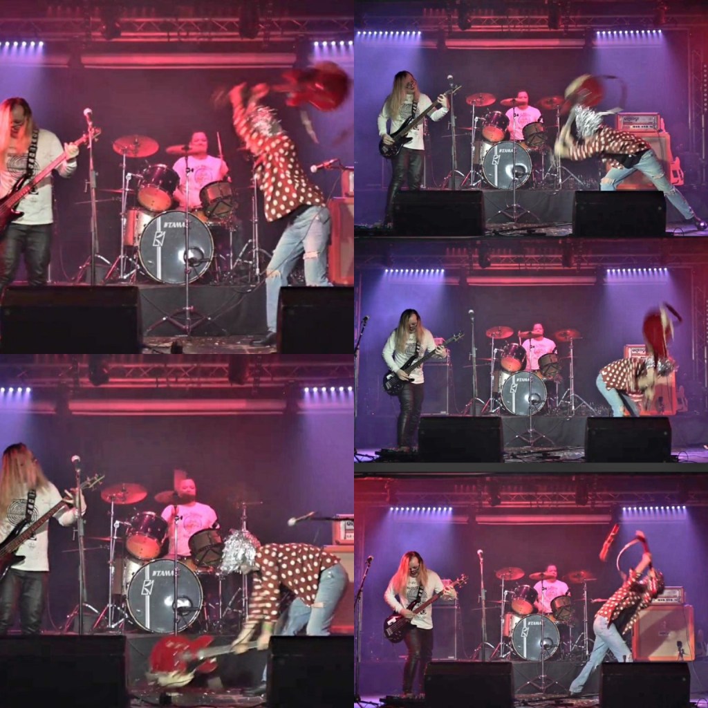 After the Paranoid Alice gig at The Hairy Dog the internet exploded when video footage of the guitarist Fabrizio Federico destroying his axe to smithereens into the stage made its way onto Facebook & TikTok, creating a trolls paradise with rock fans & pop fans clashing over the validity of bands destroying their guitars in a cathartic moment. It has been a tradition in rock music since 1964 when The Who’s Pete Townshend smashed his first Rickenbacker into the ceiling and Nirvana, Jimi Hendrix, The Vines, Arcade Fire and Deep Purple all going ape shit onstage when the music takes them higher.